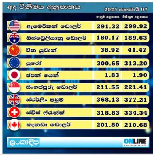 අද විනිමය අනුපාතය: 07 ජනවාරි 2024