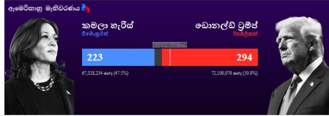 අමෙරිකා එක්සඑත් ජනපදයේ 47 වන ජනාධිපතිවරයා ලෙස රිපබ්ලිකන් පක්ෂයේ ඩොනල්ඩ් ට්රම්ප් තේරී පත් වී තිබේ.