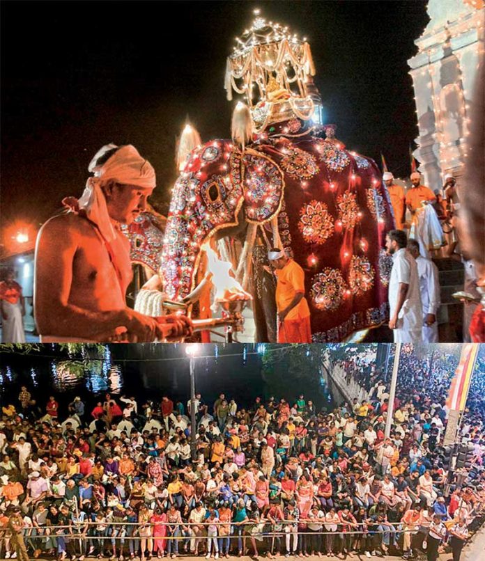 නන් දෙසින් පැමිණි ලක්ෂ සංඛ්යාත ජන සමූහයා සාධුකාර හඬ නංවමින් පෙරහැර මගෙහි අතුරු සිදුරු නොමැතිව රැඳී සිටින අයුරු දක්නට ලැබිණි.