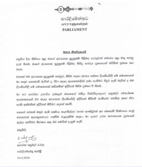 නමුත් එම ලියකියවිලි මේ මොහොතේ කඩිනමින් ඉදිරිපත් කිරීමට අපහසු බවත් ඔහු සිය ලිපිය මගින් පවසයි.