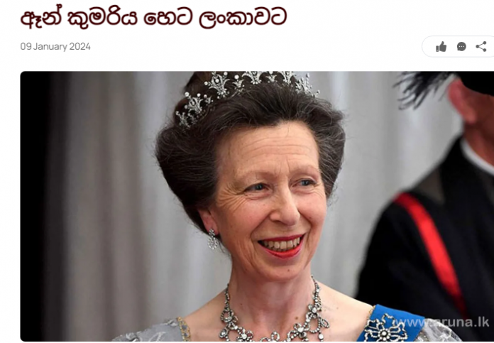 එංගලන්තයේ ඈන් කුමරිය නිල චාරිකාවක් සඳහා හෙට (10) ශ්රී ලංකාවට පැමිණෙන බව ශ්රී ලංකා විදේශ කටයුතු අමාත්යාංශය නිවේදනය කරයි.