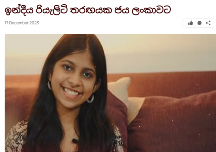 ඉන්දියාවේ රූපවාහිනී නාලිකාවක විකාශය කළ රියැලිටි තරගාවලියකින් ජය ගැනීමට ශ්‍රී ලාංකික දැරියක් සමත් වී තිබේ.