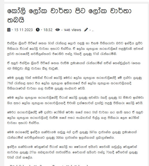 ඒ අනුව එක්දින ක්රිකට් පිටියේ ශතක වැඩිම ප්රමාණයක් රැස්කරමින් සචින් තෙන්ඩුල්කර් (ශතක 49) පිහිටුවා තිබූ වාර්තා බිඳ වැටුණි.