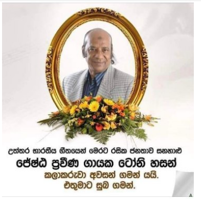 හින්දි ගීයෙන් මෙරට රසික හදවත් දසක පහක පමණ කාලයක් අමානන්දන්යට පත්කළ ජ්‍යෙෂ්ඨ ගායන ශිල්පී ටෝනි හසන් 17දා අපෙන් සමු ගත්තා. ඔහු මියයන විට 73 වැනි වියේ පසු වුවා.