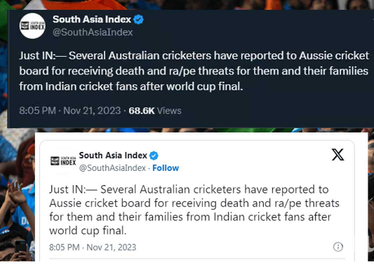තව ද ග්ලෙන් මැක්ස්වේල් සහ ට්‍රවීෂ් හෙඩ් ඉලක්ක කරගනිමින් අදාළ වෛරී ප්‍රකාශ නිකුත් වී ඇති බවයත් ජාත්‍යන්තර මාධ්‍ය සඳහන් කරයි.