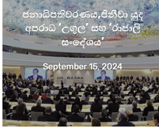 මෑතකදී ජිනීවා මානව හිමිකම් කවුන්සිලය විසින් නිකුත් කළ නිගමන සහ නිර්දේශ ජනාධිපතිවරණයෙන් ජය ගනු ලබන පාර්ශ්වය ඉලක්ක කර ඉදිරිපත් කර ඇත. පසුගිය අගෝස්තු 22 වැනි දින නිකුත් කරන ලද නිගමනයන් සහ නිර්දේශයන් අවධාරණය කරන අනතුරුදායක තත්ත්වය තේරුම් ගැනීමට ආණ්ඩුවට හෝ විපක්ෂයට කිසිදු වුවමනාවක් නැත. ආණ්ඩුව සහ විපක්ෂය ජිනීවා අභියෝගය ඉදිරියේ අන්ධයින් ලෙස කටයුතු කරයි. ජනාධිපතිවරණයට සහ ඊට පසුව පැවැත්වීමට නියමිත මහමැතිවරණය අවධානයට යොමු කරමින් ජිනීවා කවුන්සියල පහත සඳහන් නිර්දේශය කර ඇත : “ජන්ද විමසීම්වලින් පසුව අලුතින් තේරී පත්වන ආණ්ඩුව, හදිසි කාර්යක් වශයෙන්, ගැටුමේ මූලික හේතුන් ආමන්ත්රණය කරන සහ සියල්ලන් ඇතුළත් ශ්රී ලංකාව සඳහා ජාතික දැක්මක් අනුගමනය කළ යුතු අතර ප්රජාතන්ත්රවාදය ශක්තිමත් කිරීමට සහ දේශපාලන අධිකාරිය විමධ්යගත කිරීමට අවශ්ය මූලික ආණ්ඩුක්රම ව්යවස්ථාමය සහ ආයතනික සංශෝධන සිදු කොට වගවීම සහ සංහිඳියාව පෙරට ගෙන ආ යුතුය.”