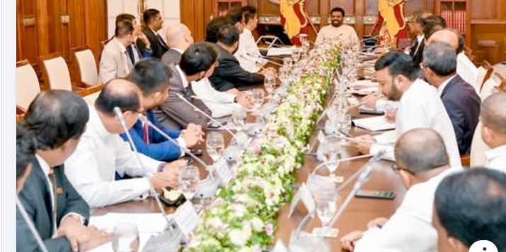 අමෙරිකාවේ නව තීරු බදු පැනවීමත් සමග මෙරට ආර්ථිකයට සිදුවන බලපෑම සහ ඒ හමුවේ ගත යුතු ඉදිරි ක්රියාමාර්ග පිළිබඳ සාකච්ඡා කිරීමේ පක්ෂ නායක හමුව ජනාධිපති අනුර කුමාර දිසානායකගේ ප්රධානත්වයෙන් අද (අප්රේල් 10) පැවැත්විණි.