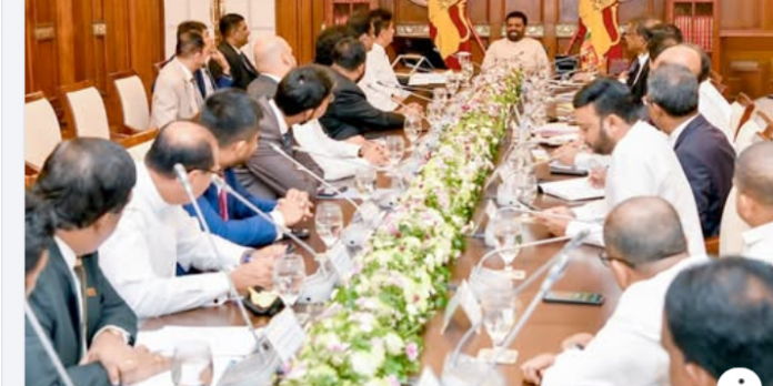 අමෙරිකාවේ නව තීරු බදු පැනවීමත් සමග මෙරට ආර්ථිකයට සිදුවන බලපෑම සහ ඒ හමුවේ ගත යුතු ඉදිරි ක්රියාමාර්ග පිළිබඳ සාකච්ඡා කිරීමේ පක්ෂ නායක හමුව ජනාධිපති අනුර කුමාර දිසානායකගේ ප්රධානත්වයෙන් අද (අප්රේල් 10) පැවැත්විණි.