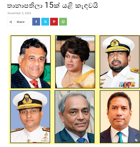 ඒ අනුව එක්සත් ජාතීන්ගේ සංවිධානයේ නිව්යෝර්ක් නුවර නිත්ය නියෝජිත ලෙස පත්වීම් ලද හිටපු අගවිනිසුරුවරයකු වන මොහාන් පීරිස්, බ්රිතාන්යයේ මහ කොමසාරිස් ලෙස පත්කළ හිටපු විදේශ අමාත්යවරයකු වන රෝහිත බෝගොල්ලාගම, ඉන්දියාවේ මහ කොමසාරිස් ලෙස පත්කළ හිටපු තානාපතිවරියක වන ෂෙනුකා සෙනෙවිරත්න, ඕස්ට්රේලියාවේ මහ කොමසාරිස් ලෙස පත්කළ චිත්රාංගනී වාගීෂ්වර, ජපානයේ තානාපති ලෙස පත්කළ රොඩ්නි පෙරේරා, මැලේසියාවේ මහ කොමසාරිස් ලෙස පත්කළ හිටපු ගුවන් හමුදාපතිවරයෙකු වන සුමංගල ඩයස්, නේපාලයේ තානාපති ලෙස පත්කළ හිටපු ගුවන් හමුදාපතිවරයකු වන සුදර්ශන පතිරණ, කියුබාවේ තානාපති ලෙස පත්කළ හිටපු නාවික හමුදාපතිවරයකු වන නිශාන්ත උලුගෙතැන්න, පාකිස්තානයේ මහ කොමසාරිස් ලෙස පත්කළ හිටපු නාවික හමුදාපතිවරයකු වන රවීන්ද්ර විජේගුණරත්න, එක්සත් අරාබි එමීර් රාජ්යයේ තානාපති ලෙස පත්කළ උදය ඉන්ද්රරත්න, කෙන්යාවේ මහ කොමසාරිස් ලෙස පත්කළ වී. කනකනාදන්, ශීෂෙල්ස් මහ කොමසාරිස් ලෙස පත්කළ හිටපු ජනාධිපති මහින්ද රාජපක්ෂ මහතාගේ බිරිඳගේ සොහොයුරෙකු වන ෂිමාල් වික්රමසිංහ සහ ඉරාන තානාපති ලෙස පත්කළ මොහොමඩ් ෂාහිඩ් යන මහත්ම මහත්මීන්ට මෙලෙස වහාම ශ්රී ලංකාවට පැමිණෙන ලෙස දැනුම් දී තිබේ.