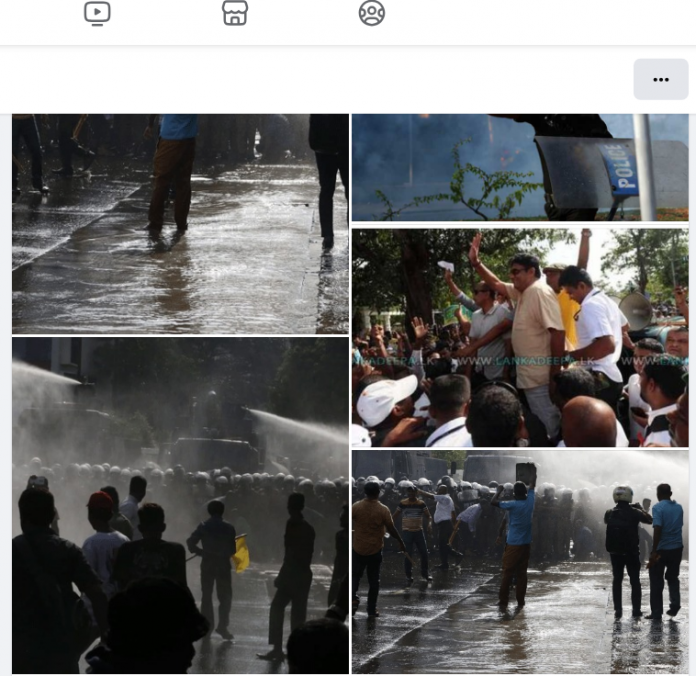 ආණ්ඩුවට විරෝධය දක්වමින් සමඟ ජන බලවේගය කොළඹදී අද (30) පැවැත්වූ විරෝධතාවට පොලිසිය කඳුළු ගෑස් සහ ජල ප්රහාර එල්ල කිරීමෙන් පසුව පාක්ෂිකයන් අමතමින් සජිත් ප්රේමදාස මහතා එසේ පැවසීය.