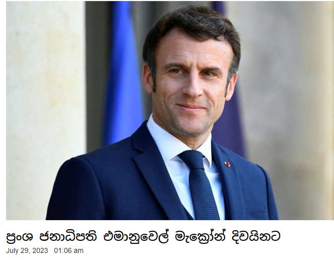 ප්රංශ ජනාධිපති එමානුවෙල් මැක්රොන් ජනාධිපති රනිල් වික්රමසිංහ මහතා සමඟ ද්විපාර්ශ්වික සාකච්ඡාවක නිරතවන අතර, එහිදී දෙරට අතර සබඳතා ශක්තිමත් කරලීම පිළිබඳ අවධානය යොමුවනු ඇත,