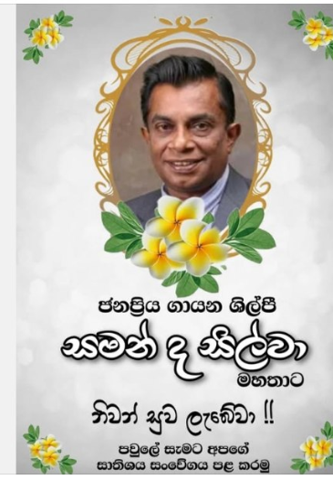 අවසන් කටයුතු සම්බන්ධව ඉදිරියේදී දැනුම් දෙනු ඇත. සමන් ද සිල්වා මහතාගේ අභාවය වෙනුවෙන් ඔහුගේ පවුලේ සාමාජිකයින්ට, හිතවතුන්ට සහ රසිකයින්ට අපගේ බලවත් සංවේගය පළ කර සිටිමු.
