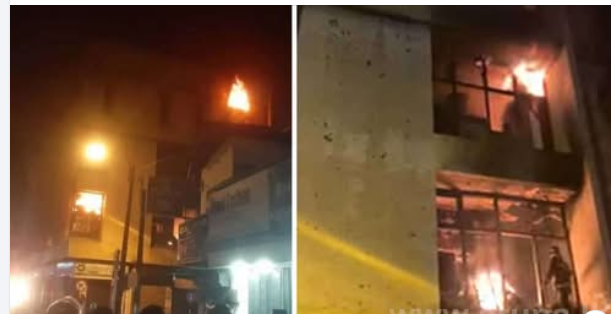 ගින්නෙන් එම ගොඩනැගිල්ලේ මහල් තුනක් සම්පූර්ණයෙන්ම විනාශ වී ගොස් තිබේ.
