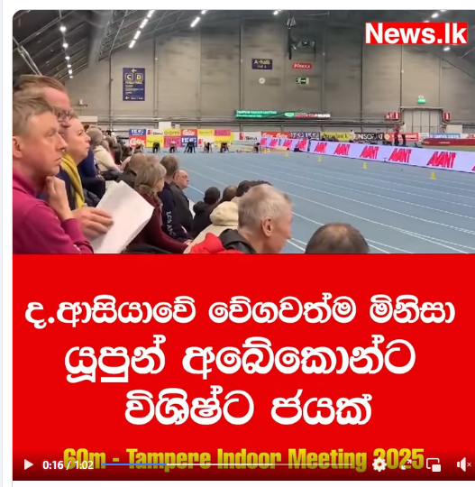 ෆින්ලන්තයේ පැවැත්වෙන Tampere Indoor Meeting ගෘහස්ථ මලල ක්රීඩා තරගාවලියේ දී පිරිමි මීටර් 60 ඉසව්ව නියෝජනය කළ යුපුන් අබේකෝන් විසින් තත්පර 6.66කින් ඉසව්ව අවසන් කරමින් දෙවැනි ස්ථානය දිනා ගැනීමට සමත් වුනා.