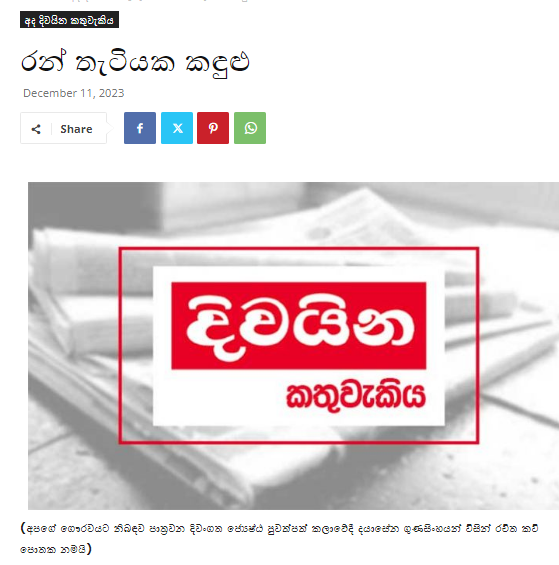 මේ පුවත මේ වනවිට අදාළ පොලිසිවල ලියවී අවසන්ය. දැන් ඉතිරිව ඇත්තේ නඩු ඇසීම පමණි. යකුන්, හොල්මන්, අපල වැනි පාරභෞතික දේවල් කෙරෙහි මේ පුවත්පත එතරම් සැලකිල්ලක් නැති වුවද අපට හිතෙන පරිදි පූජනීය ස්ථානයකට පූජා කරන ලද පූජා භාණ්ඩයක් සොරකම් කිරීම හෙණ ගහන අපරාධයකි. මන්ද මෙහි ඇත්තේ බැතිමතාගේ මුදල් ය. ඒ බැතිමතා එක්කෝ අංගොඩ ලොක්කා වැනි ඩැමේජ් වුණු ඩයලයක් විය හැකිය. නැත්නම් ඉතාම දුප්පත් මිනිහකු විය හැකිය. මෙවැනි අය දේවාලවලට යන්නේ අපල උපද්රව වැනි ග්රහ දෝෂවලට උසාවිය හෝ පොලිසිය මාර්ගයෙන් සාධාරණ විසඳුමක් ලබාගත නොහැකි නිසාය. සමහරවිට ඔවුන් දෙවියන් ඉදිරියට ගෙන යන ප්රශ්න ඉතාම sensitive වර්ගයේ ප්රශ්න වීමට ඉඩ තිබේ. එවැනි කටයුතු සඳහා බලි තොවිල් කිරීමටත් යන්තර දැමීමටත් දුප්පත් ජනයා මුදල් හොයාගන්නේ ගෙවල් දොරවල් උගස් තැබීමෙනි. අංගොඩ ලොක්කාගේ සල්ලි කෙළින්ම කුඩු සල්ලිය. ඒ නිසා ඔහුගේ රන් තලිය කෙළින්ම කුණු ගෑවුණු රන් තලියකි. කුඩු සල්ලි වලින් මිලට ගත් රන් තලියක් නිසා දෙවියෝ එය ප්රතික්ෂේප කළා වත්ද? එසේ ප්රතික්ෂේප කළ බැවින් කපු රැළ විසින් එය සොරාගන්නා ලද්දේද. කතරගම රන් තැටි හොරකම සම්බන්ධයෙන් අධිකරණමය ක්රියාවලියක් ක්රියාත්මක වෙමින් පවතී. සමහරවිට උසාවියට කලින් දෙවියෝ මේ හොරුන්ට ෂොට් එක දෙනවා ඇත.