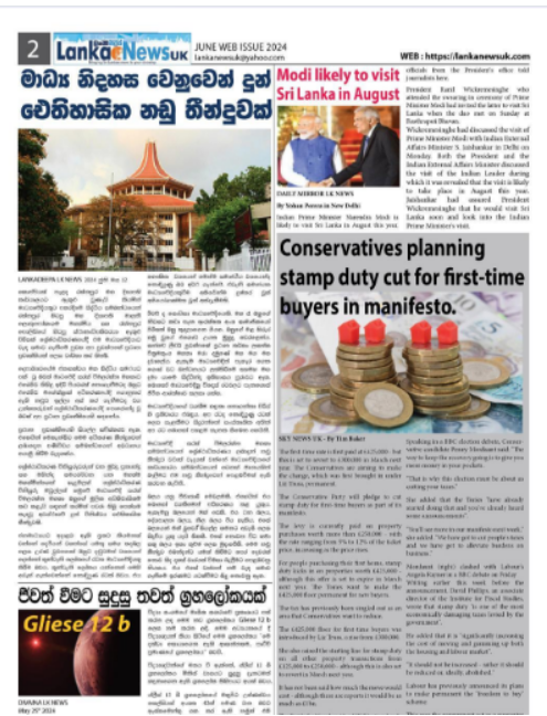 4 ජුනිමස ලංකා නිවුස් යුකේ අන්තර් ජාල පුවත්පත සුපුරුදු පරිදි මෙවරද ඔබ සැමවෙත පිරිනමන්නෙමු.දිවයිනේ සිංහල හා ඉංග්රීසි පුවත්පත් රාශියක් පළ කෙරෙන අතර මේ සියල්ල කියවීමට කාර්ය බහුල දිවි පෙවෙතක් ගත කරණ ඔබ හැමට ඒවා කියවීමට ඔබට විශාල කාල වේලාවක් ඒ සඳහා වැය කිරීමට සිදුවේ ඔබේ නිවසේ සිට ඕනෑම විටක කියවීමට පහසු වන පරිද්දෙන් අප අපේ පුවත්පත මගින් තෝරා ගත් විශේෂාංග ලිපි මෙන්ම වැදගත් පුවත් ඔබ වෙත ගෙනෙන්නේ දිවයිනෙන් බැහැරව වෙසෙන ලාංකිකයනට හෙළබසින් මෙන්ම ඉංග්රීසියෙන්ද යන දෙබසින්ම මාසිකව මෙම පුවත්පත අප විසින් පළ කරනු ලබන්නේ ඔබ ගෙන් මග හැ රෙන පුවත් හා විශේෂාංග ලිපි කියවිම පිණිස ඔබ හැම වෙත පිරිනැමීමේ අරමුණ පෙරදැරි කර ගෙනය.