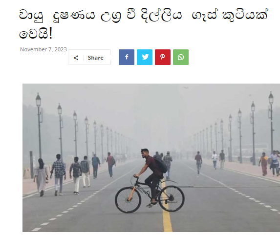 වායු දූෂණය උග්ර වී දිල්ලිය ගෑස් කුටියක් වෙයි!