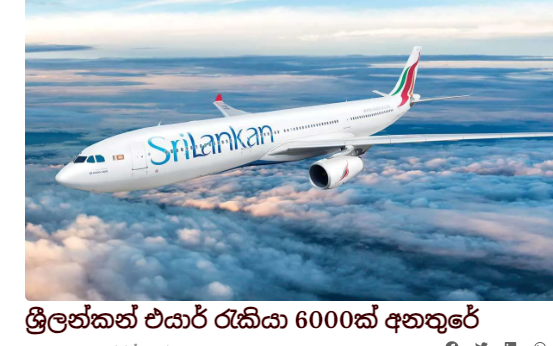 ශ්‍රීලන්කන් එයාර් රැකියා 6000ක් අනතුරේ