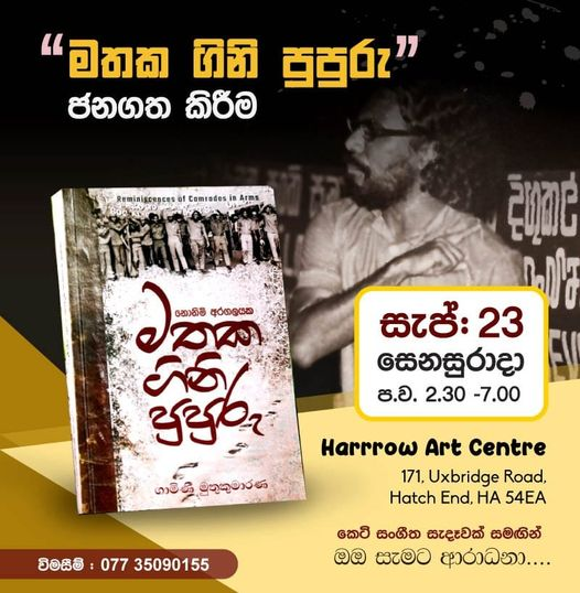 1987-89 අරගලය අලලා මවිසින් රචිත “මතක ගිනි පුපුරු” මැයෙන් වූ කෘතිය , ලබන සෙනසුරාදා ලංඩන්හිදී එළිදැක්වෙයි.