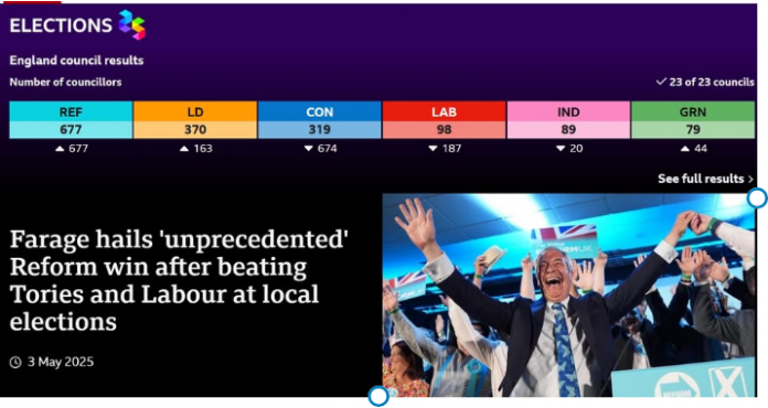 Farage hails election results, as Labour and Tories digest losses