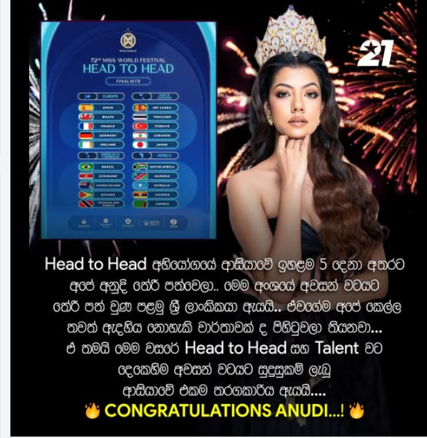 ANUDI GUNASEKARA – Congratulations! අපේ රටට කිරුළ අරගෙන එන්න ශක්තිය ධෛර්යය ලැබේවා..!!!
