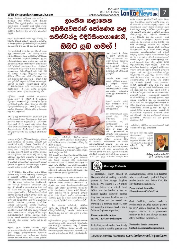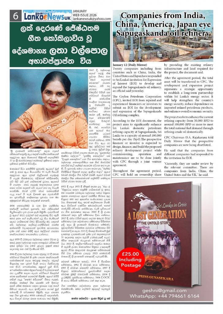 Lanka News UK- 2026 , Issue E paper is out now..!