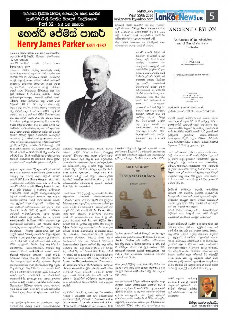 - හෙන්රි ජේම්ස් පාකර්. අද මා ඔබේ අවධානයට යොමු කරන්නේ එවන් තවත් විද්වතෙකු පිළිබඳවය. ඔහු 1873 ජූනි මාසයේ දී ලංකාවට පැමිණි සිවිල් ඉංජිනේරුවරයෙකුවූ හෙන්රි ජේම්ස් පාකර් (Henry James Parker)ය. ඔහු උපත ලබා තිබුණේ 1852 දී බව සඳහන් වන නමුදු ඔහුගේ මුල් කාලින ජීවිතය පිළිබඳ තොරතුරක් ඔහු විසින් සඳහන් කර නොතිබීම නැතිනම් අප්රකට ලෙස වසන් කර තිබීම විශේෂත්වයක් විය. ඔහු මෙහි පැමිණෙන විට ඔහුගේ වයස 21 පමණ ලාබාල තරුණයෙකු විය. 1873 ඔහු අරඹා තිබුණේ උතුරු මැද හා වයඹ පළාත් වල වාරිමාර්ග ඉංජිනේරුවකු ලෙසය. මේ අතර තුර ඔහුට එකල මෙරට පරිපාලන සේවාවේ යෙදුනු දිවයින පිලිබඳ පුළුල් අධ්යනයක යෙදෙමින් පොත්පත ලියු විශිෂ්ඨයන් වූ ලංකාවේ යටත් විජිත ලේකම්වරයෙකු වූ ශ්රීමත් ජේම්ස් ටෙනන්ට්, පුරාවිද්යා පිලිබඳ කොමසාරිස්වරයෙකුවූ එච්. සී. පී. බෙල් මෙන්ම එච්. ඩබ්ලිව්. කොඩ්රින්ටන්, විලියම් ගයිගර්, ජෝර්ජ් ටර්නර්, හියු නෙවිල, රීස් ඩේවිඩ්ස් හා සි. ජි. සෙලිස්මාන් වැන්නවුන්ගේ සටහන්, සේවාවන් හා පොත්පත් කියවා පුළුල් දැනුමක් කෙටි කලකින්ම ලබාගෙන තිබුණි.