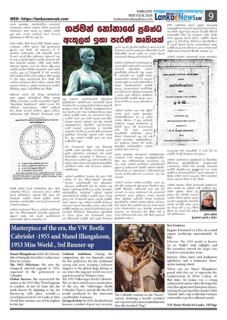- When you see Manel Illangakoon posed with this car, it represents the sophistication of 1950s Ceylon. At that time, Sri Lanka was a young independent nation with a thriving elite class that appreciated European luxury, making the pairing of the country’s first “Queen” and a top-of-the-line German convertible a perfect editorial match.