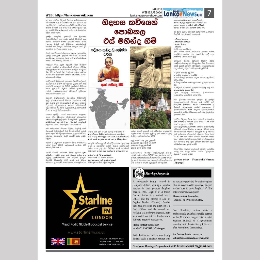 Lanka News UK- March 2026 -ලංකා නිවුස් යුකේ මාර්තු-අන්තර් ජාල පුවත්පත