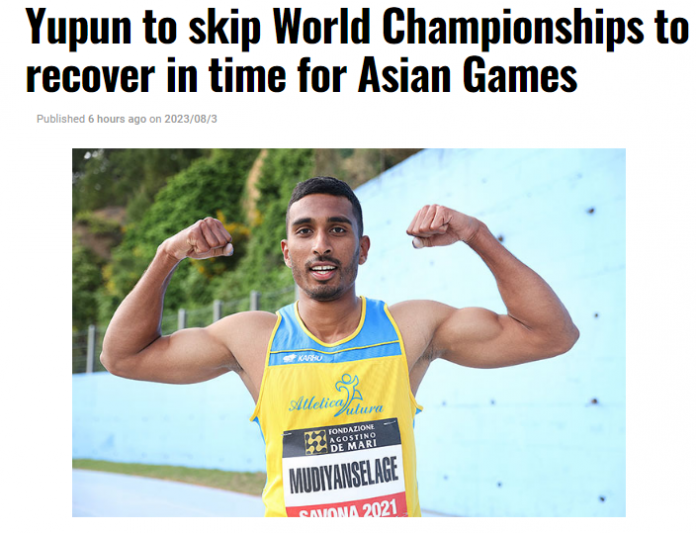 Italy-based sprinter Yopun Abeykoon will skip the forthcoming World Championships and will look forward to recovering to do well at the Asian Games.