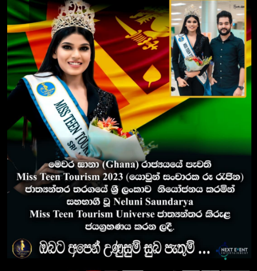 මෙවර ඝානා (Ghana) පැවති Miss Teen Tourism 2023 (යොවුන් සංචාරක රූ රැජින) ජාත්යන්තර තරගයේ ශ්රී ලංකාව නියෝජනය කරමින් සහභාගී වූ Neluni Saundarya Miss Teen Tourism Universe ජාත්යන්තර කිරුළ ජයග්රහණය කරන ලදී.