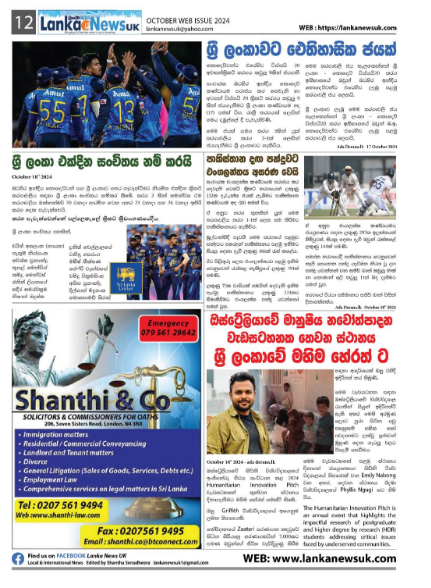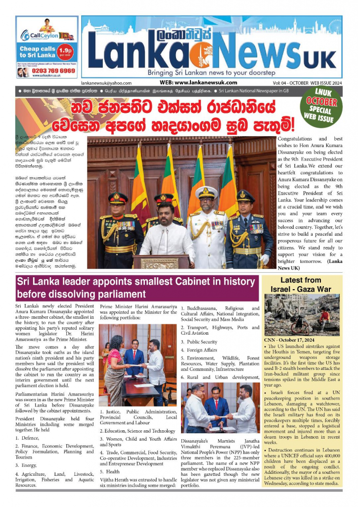 Lanka News UK -Octomber 2024 issue – Online Newspaper