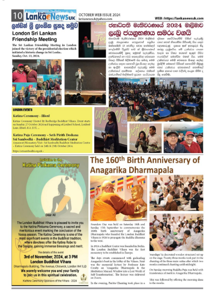ලංකා නිවුස් යුකේ ඔක්තෝම්බර් මස 2024 – අන්තර්ජාල පුවත්පතLanka News UK -October2024 issue – Online Newspaper