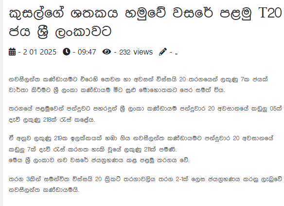 කුසල්ගේ ශතකය හමුවේ වසරේ පළමු T20 ජය ශ්‍රීලංකාවට