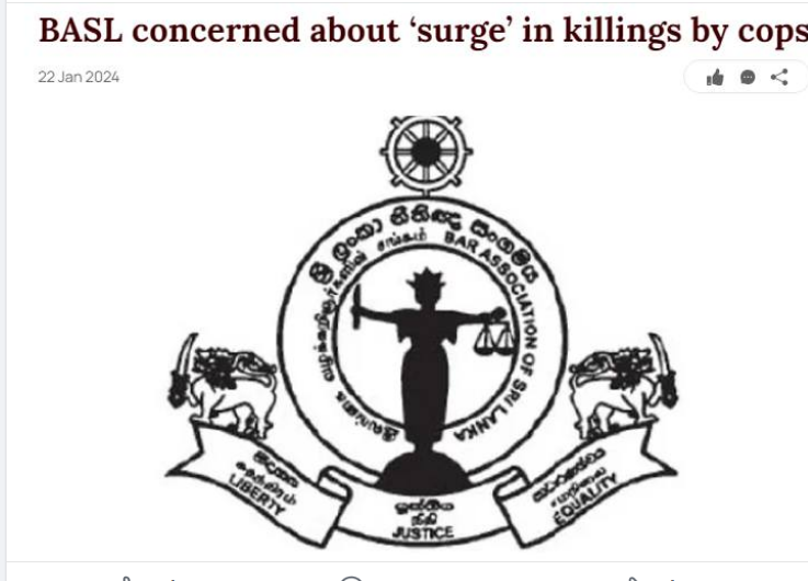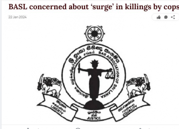 Following the most recent death of a person in Narammala who was shot by a Police officer dressed in civil attire, the Bar Association of Sri Lanka (BASL) has raised concerns about the recent surge in fatalities in the country involving the Police.