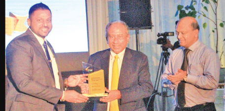 Bank of Ceylon Chairman Ronald Perera and General Manager Russel Fonseka presents an appreciation award to R. Roshana Waduge, Managing Director of Senaro Motor Company. Picture by Wimal Karunatillike