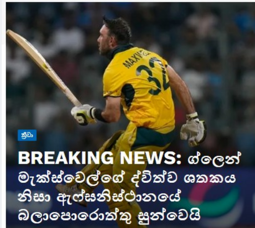 ලෝක කුසලාන ක්රිකට් තරගාවලියේ ඔස්ට්රේලියාව සහ ඇෆ්ඝනිස්ථානය අතර පැවති තීරණාත්මක තරගයෙන් ඔස්ට්රේලියාවට කඩුලු 3ක නොසිතූ විරූ ජයක් හිමි කර දීමට ග්ලෙන් මැක්ස්වෙල් සමත් විය.