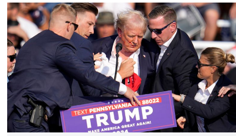 Gunshots have reportedly been fired at Donald Trump’s rally in Pennsylvania, with the former president rushed off-stage by security staff.