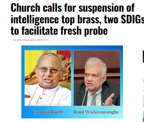 The letter containing the five-point proposal dated 09 Oct. 2023 and addressed to President Ranil Wickremesinghe, has been signed by Archbishop Malcolm Cardinal Ranjith, Bishop of Colombo, Bishop Harold Anthony Perera, Bishop of Kurunegala and the President of the Catholic Bishops’ Conference, Bishop Valence Mendis, Bishop of Kandy/Apostolic Administrator, Chilaw, Bishop Raymond Wickramasinghe, Bishop of Galle and other senior priests.