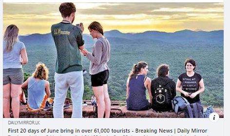 Tourist arrivals to Sri Lanka totalled 61,183 in the first 20 days of June, provisional data from the Sri Lanka Tourism Development Authority showed.