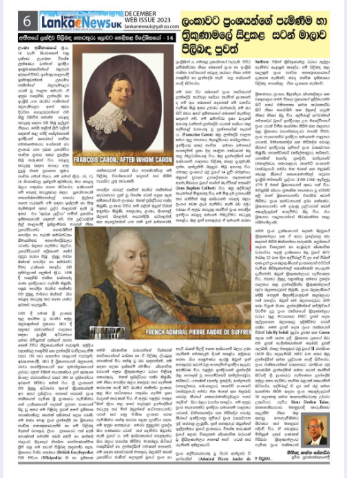 ලංකාවට ප්‍රංශයන්ගේ පැමිණීම හා ත්‍රිකුණාමලේ සිදුකළ සටන් මාලාව පිලිබඳ පුවත්
