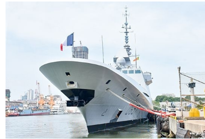The French Naval Ship Lorraine arrived at the port of Colombo on a formal visit this morning (11th July 2023). The ship was welcomed by the Sri Lanka Navy in accordance with naval tradition.