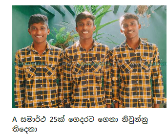 අපොස සාමාන්ය පෙල විභාගයෙන් ඒ සාමාර්ථ 25 ක ත්යාගයක් දෙමාපියන්ට දායාද කිරීමට ගාල්ල මාපලගම නිවුන් සොයුරෝ තිදෙනෙක් සමත් වූහ.