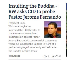 President Ranil Wickremesinghe has informed the CID Director to commence an immediate investigation against Pastor Jerome Fernando’s controversial statements where he insulted the Buddha in front of a packed congregation recently and said even the Buddha needed Jesus.