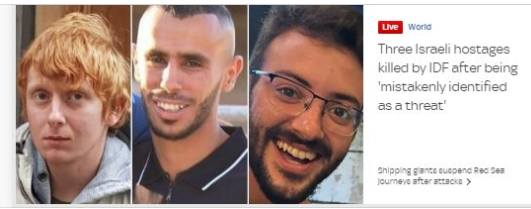 Israel-Gaza latest: Three Israeli hostages killed by IDF after being ‘mistakenly identified as a threat’