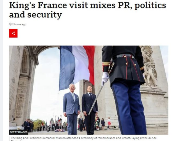 There was little chance so far for the French crowds to see the King and Queen. At the Arc de Triomphe there were soldiers, police and a big media contingent, but the ordinary Parisians were kept far away behind security barriers.