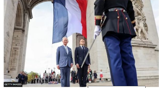 The Arc de Triomphe, with a flypast trailing the colours of the French flag, was the first backdrop for this diplomatic theatre, with President Emmanuel Macron pulling out all the stops for his royal visitors.