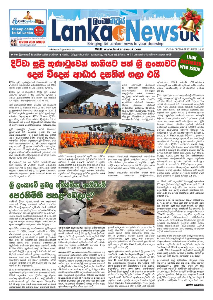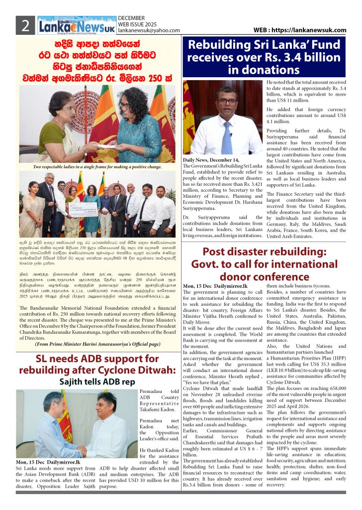 දිට්වා සුළි කුණාටුවෙන් ව්යසනයට පත් ශ්රී ලංකාවේ ජන ජීවිතය යථා තත්ත්වයට පත් කිරීම සඳහා දෙස් විදෙස් ආධාර දසතින් ගලාඑයි.