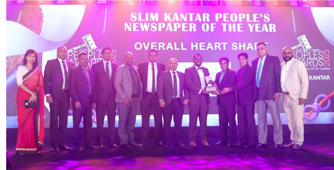 Our sister paper Lankadeepa newspaper won the Most Popular People’s Newspaper of the Year Award for the 19th consecutive year at the ’SLIM-KANTAR People’s Awards 2025’ being held at the Monarch Imperial, Sri Jayawardenapura Kotte