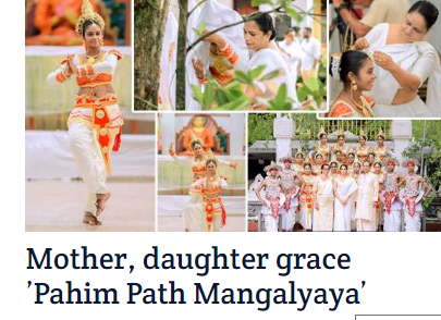A mother (42) and daughter (16) recently held the ‘Pahim Path Mangalyaya’ (a stage performance a dance student performs after undertaking years of training) at the Walukaram Maha Viharaya, Katukurunda, Moratuwa for the first time in Sri Lanka’s dancing history. This annual ‘Kalaeli Mangalya’, the Sri Lankan traditional dance graduation, was held by the Janaranjana Kalayathnaya recently at the Walukaram Maha Viharaya. The Kalayathnaya is conducted by Mrs. Janaki Ranaweera Arachchi.